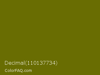 Decimal 110137734 Color is a very dark yellow color and the nearest color is Bronze Yellow #737000. Hex code #696d02 and RGB value is rgb(105,109,2). In RGB color space, this color is composed of 41% red, 43% green, 1% blue, In CMYK color space, this color is composed of 4% cyan, 0% magenta, 98% yellow , 57% black , In HSL color space, this color has a hue angle of 62° , 96% saturation and 22% lightness.