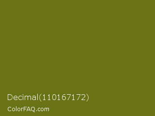 Decimal 110167172 Color is a dark yellow color and the nearest color is Olivetone #716e10. Hex code #697214 and RGB value is rgb(105,114,20). In RGB color space, this color is composed of 41% red, 45% green, 8% blue, In CMYK color space, this color is composed of 8% cyan, 0% magenta, 82% yellow , 55% black , In HSL color space, this color has a hue angle of 66° , 70% saturation and 26% lightness.