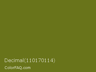 Decimal 110170114 Color is a dark yellow color and the nearest color is Fern Frond #657220. Hex code #69741a and RGB value is rgb(105,116,26). In RGB color space, this color is composed of 41% red, 45% green, 10% blue, In CMYK color space, this color is composed of 9% cyan, 0% magenta, 78% yellow , 55% black , In HSL color space, this color has a hue angle of 67° , 63% saturation and 28% lightness.