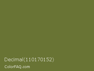 Decimal 110170152 Color is a normal yellow color and the nearest color is Crete #737829. Hex code #697434 and RGB value is rgb(105,116,52). In RGB color space, this color is composed of 41% red, 45% green, 20% blue, In CMYK color space, this color is composed of 9% cyan, 0% magenta, 55% yellow , 55% black , In HSL color space, this color has a hue angle of 70° , 38% saturation and 33% lightness.