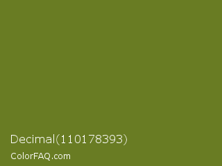 Decimal 110178393 Color is a normal lime color and the nearest color is Fern Frond #657220. Hex code #697c23 and RGB value is rgb(105,124,35). In RGB color space, this color is composed of 41% red, 49% green, 14% blue, In CMYK color space, this color is composed of 15% cyan, 0% magenta, 72% yellow , 51% black , In HSL color space, this color has a hue angle of 73° , 56% saturation and 31% lightness.