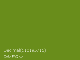 Decimal 110195715 Color is a normal lime color and the nearest color is Olive Drab #6b8e23. Hex code #698d1b and RGB value is rgb(105,141,27). In RGB color space, this color is composed of 41% red, 55% green, 11% blue, In CMYK color space, this color is composed of 26% cyan, 0% magenta, 81% yellow , 45% black , In HSL color space, this color has a hue angle of 79° , 68% saturation and 33% lightness.