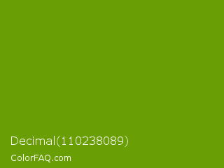 Decimal 110238089 Color is a normal green color and the nearest color is Limeade #6f9d02. Hex code #699f05 and RGB value is rgb(105,159,5). In RGB color space, this color is composed of 41% red, 62% green, 2% blue, In CMYK color space, this color is composed of 34% cyan, 0% magenta, 97% yellow , 38% black , In HSL color space, this color has a hue angle of 81° , 94% saturation and 32% lightness.