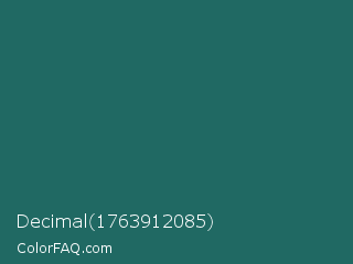 Decimal 1763912085 Color is a dark cyan color and the nearest color is Genoa #15736b. Hex code #206963 and RGB value is rgb(32,105,99). In RGB color space, this color is composed of 13% red, 41% green, 39% blue, In CMYK color space, this color is composed of 70% cyan, 0% magenta, 6% yellow , 59% black , In HSL color space, this color has a hue angle of 175° , 53% saturation and 27% lightness.