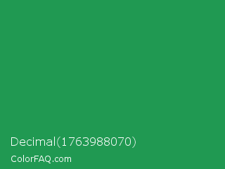 Decimal 1763988070 Color is a normal green color and the nearest color is Eucalyptus #278a5b. Hex code #209952 and RGB value is rgb(32,153,82). In RGB color space, this color is composed of 13% red, 60% green, 32% blue, In CMYK color space, this color is composed of 79% cyan, 0% magenta, 46% yellow , 40% black , In HSL color space, this color has a hue angle of 145° , 65% saturation and 36% lightness.