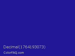 Decimal 1764193073 Color is a normal indigo color and the nearest color is Jacksons Purple #20208d. Hex code #211693 and RGB value is rgb(33,22,147). In RGB color space, this color is composed of 13% red, 9% green, 58% blue, In CMYK color space, this color is composed of 78% cyan, 85% magenta, 0% yellow , 42% black , In HSL color space, this color has a hue angle of 245° , 74% saturation and 33% lightness.