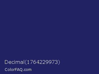 Decimal 1764229973 Color is a dark blue color and the nearest color is Lucky Point #1a1a68. Hex code #212263 and RGB value is rgb(33,34,99). In RGB color space, this color is composed of 13% red, 13% green, 39% blue, In CMYK color space, this color is composed of 67% cyan, 66% magenta, 0% yellow , 61% black , In HSL color space, this color has a hue angle of 239° , 50% saturation and 26% lightness.