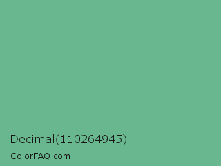 Decimal 110264945 Color is a normal green color and the nearest color is Silver Tree #66b58f. Hex code #69b78f and RGB value is rgb(105,183,143). In RGB color space, this color is composed of 41% red, 72% green, 56% blue, In CMYK color space, this color is composed of 43% cyan, 0% magenta, 22% yellow , 28% black , In HSL color space, this color has a hue angle of 149° , 35% saturation and 56% lightness.