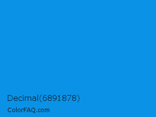 Decimal 6891878 Color is a normal blue color and the nearest color is Rich Electric Blue #0892d0. Hex code #0a92e6 and RGB value is rgb(10,146,230). In RGB color space, this color is composed of 4% red, 57% green, 90% blue, In CMYK color space, this color is composed of 96% cyan, 37% magenta, 0% yellow , 10% black , In HSL color space, this color has a hue angle of 203° , 92% saturation and 47% lightness.