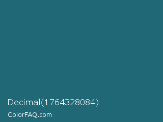 Decimal 1764328084 Color is a dark cyan color and the nearest color is Blumine #18587a. Hex code #216876 and RGB value is rgb(33,104,118). In RGB color space, this color is composed of 13% red, 41% green, 46% blue, In CMYK color space, this color is composed of 72% cyan, 12% magenta, 0% yellow , 54% black , In HSL color space, this color has a hue angle of 190° , 56% saturation and 30% lightness.