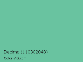 Decimal 110302048 Color is a normal green color and the nearest color is Green Sheen #6eaea1. Hex code #69c3a0 and RGB value is rgb(105,195,160). In RGB color space, this color is composed of 41% red, 76% green, 63% blue, In CMYK color space, this color is composed of 46% cyan, 0% magenta, 18% yellow , 24% black , In HSL color space, this color has a hue angle of 157° , 43% saturation and 59% lightness.