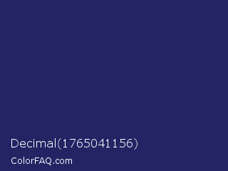 Decimal 1765041156 Color is a dark blue color and the nearest color is Lucky Point #1a1a68. Hex code #222464 and RGB value is rgb(34,36,100). In RGB color space, this color is composed of 13% red, 14% green, 39% blue, In CMYK color space, this color is composed of 66% cyan, 64% magenta, 0% yellow , 61% black , In HSL color space, this color has a hue angle of 238° , 49% saturation and 26% lightness.