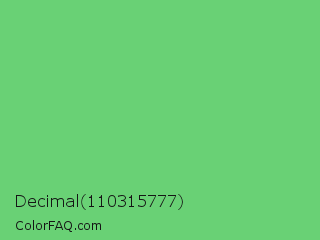 Decimal 110315777 Color is a light green color and the nearest color is Pastel Green #77dd77. Hex code #69d175 and RGB value is rgb(105,209,117). In RGB color space, this color is composed of 41% red, 82% green, 46% blue, In CMYK color space, this color is composed of 50% cyan, 0% magenta, 44% yellow , 18% black , In HSL color space, this color has a hue angle of 127° , 53% saturation and 62% lightness.