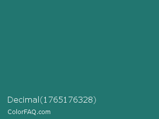 Decimal 1765176328 Color is a dark cyan color and the nearest color is Genoa #15736b. Hex code #227670 and RGB value is rgb(34,118,112). In RGB color space, this color is composed of 13% red, 46% green, 44% blue, In CMYK color space, this color is composed of 71% cyan, 0% magenta, 5% yellow , 54% black , In HSL color space, this color has a hue angle of 176° , 55% saturation and 30% lightness.
