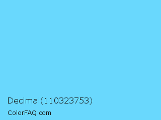 Decimal 110323753 Color is a light blue color and the nearest color is Turquoise Blue #6cdae7. Hex code #69d8fd and RGB value is rgb(105,216,253). In RGB color space, this color is composed of 41% red, 85% green, 99% blue, In CMYK color space, this color is composed of 58% cyan, 15% magenta, 0% yellow , 1% black , In HSL color space, this color has a hue angle of 195° , 97% saturation and 70% lightness.