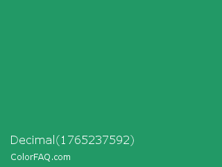 Decimal 1765237592 Color is a normal green color and the nearest color is Eucalyptus #278a5b. Hex code #229966 and RGB value is rgb(34,153,102). In RGB color space, this color is composed of 13% red, 60% green, 40% blue, In CMYK color space, this color is composed of 78% cyan, 0% magenta, 33% yellow , 40% black , In HSL color space, this color has a hue angle of 154° , 64% saturation and 37% lightness.