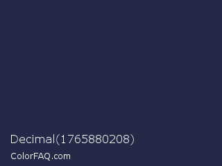 Decimal 1765880208 Color is a very dark blue color and the nearest color is Yankees Blue #1c2841. Hex code #232946 and RGB value is rgb(35,41,70). In RGB color space, this color is composed of 14% red, 16% green, 27% blue, In CMYK color space, this color is composed of 50% cyan, 41% magenta, 0% yellow , 73% black , In HSL color space, this color has a hue angle of 230° , 33% saturation and 21% lightness.