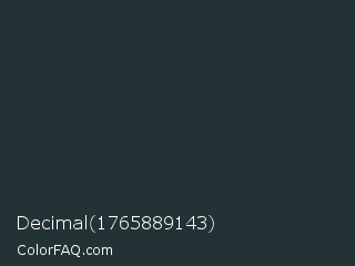 Decimal 1765889143 Color is a very dark cyan color and the nearest color is Gunmetal #2a3439. Hex code #233235 and RGB value is rgb(35,50,53). In RGB color space, this color is composed of 14% red, 20% green, 21% blue, In CMYK color space, this color is composed of 34% cyan, 6% magenta, 0% yellow , 79% black , In HSL color space, this color has a hue angle of 190° , 20% saturation and 17% lightness.