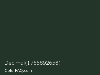 Decimal 1765892658 Color is a very dark green color and the nearest color is Black Leather Jacket #253529. Hex code #233528 and RGB value is rgb(35,53,40). In RGB color space, this color is composed of 14% red, 21% green, 16% blue, In CMYK color space, this color is composed of 34% cyan, 0% magenta, 25% yellow , 79% black , In HSL color space, this color has a hue angle of 137° , 20% saturation and 17% lightness.