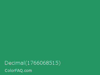Decimal 1766068515 Color is a normal green color and the nearest color is Eucalyptus #278a5b. Hex code #239663 and RGB value is rgb(35,150,99). In RGB color space, this color is composed of 14% red, 59% green, 39% blue, In CMYK color space, this color is composed of 77% cyan, 0% magenta, 34% yellow , 41% black , In HSL color space, this color has a hue angle of 153° , 62% saturation and 36% lightness.