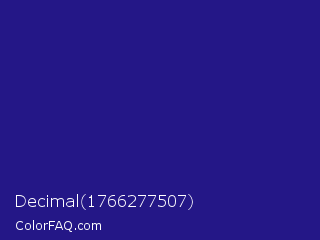 Decimal 1766277507 Color is a normal indigo color and the nearest color is Jacksons Purple #20208d. Hex code #241787 and RGB value is rgb(36,23,135). In RGB color space, this color is composed of 14% red, 9% green, 53% blue, In CMYK color space, this color is composed of 73% cyan, 83% magenta, 0% yellow , 47% black , In HSL color space, this color has a hue angle of 247° , 71% saturation and 31% lightness.