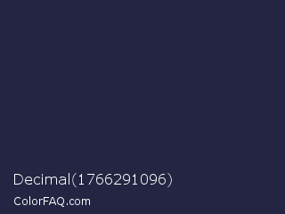 Decimal 1766291096 Color is a very dark blue color and the nearest color is Ebony Clay #26283b. Hex code #242542 and RGB value is rgb(36,37,66). In RGB color space, this color is composed of 14% red, 15% green, 26% blue, In CMYK color space, this color is composed of 45% cyan, 44% magenta, 0% yellow , 74% black , In HSL color space, this color has a hue angle of 238° , 29% saturation and 20% lightness.