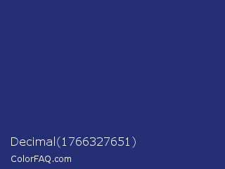 Decimal 1766327651 Color is a dark blue color and the nearest color is St Patricks Blue #23297a. Hex code #243073 and RGB value is rgb(36,48,115). In RGB color space, this color is composed of 14% red, 19% green, 45% blue, In CMYK color space, this color is composed of 69% cyan, 58% magenta, 0% yellow , 55% black , In HSL color space, this color has a hue angle of 231° , 52% saturation and 30% lightness.