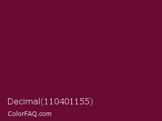 Decimal 110401155 Color is a dark rose color and the nearest color is Black Rose #67032d. Hex code #6a0b33 and RGB value is rgb(106,11,51). In RGB color space, this color is composed of 42% red, 4% green, 20% blue, In CMYK color space, this color is composed of 0% cyan, 90% magenta, 52% yellow , 58% black , In HSL color space, this color has a hue angle of 335° , 81% saturation and 23% lightness.