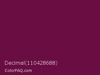 Decimal 110428688 Color is a dark magenta color and the nearest color is Tyrian Purple #66023c. Hex code #6a0d42 and RGB value is rgb(106,13,66). In RGB color space, this color is composed of 42% red, 5% green, 26% blue, In CMYK color space, this color is composed of 0% cyan, 88% magenta, 38% yellow , 58% black , In HSL color space, this color has a hue angle of 326° , 78% saturation and 23% lightness.