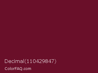 Decimal 110429847 Color is a dark rose color and the nearest color is Black Rose #67032d. Hex code #6a0f29 and RGB value is rgb(106,15,41). In RGB color space, this color is composed of 42% red, 6% green, 16% blue, In CMYK color space, this color is composed of 0% cyan, 86% magenta, 61% yellow , 58% black , In HSL color space, this color has a hue angle of 343° , 75% saturation and 24% lightness.