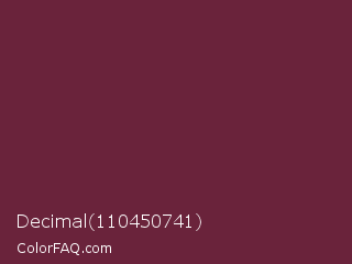 Decimal 110450741 Color is a dark rose color and the nearest color is Tawny Port #692545. Hex code #6a233b and RGB value is rgb(106,35,59). In RGB color space, this color is composed of 42% red, 14% green, 23% blue, In CMYK color space, this color is composed of 0% cyan, 67% magenta, 44% yellow , 58% black , In HSL color space, this color has a hue angle of 340° , 50% saturation and 28% lightness.