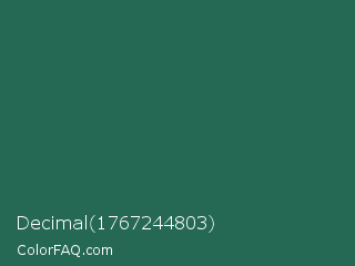 Decimal 1767244803 Color is a dark green color and the nearest color is Stromboli #325d52. Hex code #256853 and RGB value is rgb(37,104,83). In RGB color space, this color is composed of 15% red, 41% green, 33% blue, In CMYK color space, this color is composed of 64% cyan, 0% magenta, 20% yellow , 59% black , In HSL color space, this color has a hue angle of 161° , 48% saturation and 28% lightness.