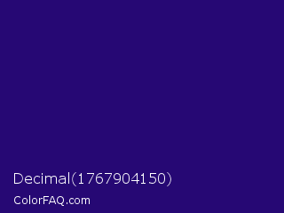 Decimal 1767904150 Color is a dark indigo color and the nearest color is Deep Blue #220878. Hex code #260874 and RGB value is rgb(38,8,116). In RGB color space, this color is composed of 15% red, 3% green, 45% blue, In CMYK color space, this color is composed of 67% cyan, 93% magenta, 0% yellow , 55% black , In HSL color space, this color has a hue angle of 257° , 87% saturation and 24% lightness.