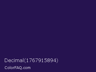 Decimal 1767915894 Color is a very dark indigo color and the nearest color is Valhalla #2b194f. Hex code #261350 and RGB value is rgb(38,19,80). In RGB color space, this color is composed of 15% red, 7% green, 31% blue, In CMYK color space, this color is composed of 53% cyan, 76% magenta, 0% yellow , 69% black , In HSL color space, this color has a hue angle of 259° , 62% saturation and 19% lightness.