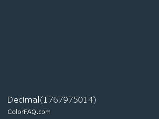 Decimal 1767975014 Color is a very dark blue color and the nearest color is Gunmetal #2a3439. Hex code #263542 and RGB value is rgb(38,53,66). In RGB color space, this color is composed of 15% red, 21% green, 26% blue, In CMYK color space, this color is composed of 42% cyan, 20% magenta, 0% yellow , 74% black , In HSL color space, this color has a hue angle of 208° , 27% saturation and 20% lightness.