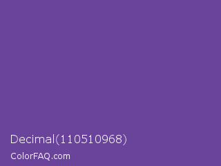 Decimal 110510968 Color is a normal violet color and the nearest color is Royal Purple #6b3fa0. Hex code #6a449a and RGB value is rgb(106,68,154). In RGB color space, this color is composed of 42% red, 27% green, 60% blue, In CMYK color space, this color is composed of 31% cyan, 56% magenta, 0% yellow , 40% black , In HSL color space, this color has a hue angle of 267° , 39% saturation and 44% lightness.
