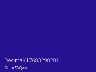 Decimal 1768329828 Color is a normal indigo color and the nearest color is Blue Gem #2c0e8c. Hex code #271190 and RGB value is rgb(39,17,144). In RGB color space, this color is composed of 15% red, 7% green, 56% blue, In CMYK color space, this color is composed of 73% cyan, 88% magenta, 0% yellow , 44% black , In HSL color space, this color has a hue angle of 250° , 79% saturation and 32% lightness.