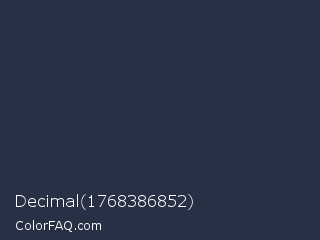 Decimal 1768386852 Color is a very dark blue color and the nearest color is Gunmetal #2a3439. Hex code #273044 and RGB value is rgb(39,48,68). In RGB color space, this color is composed of 15% red, 19% green, 27% blue, In CMYK color space, this color is composed of 43% cyan, 29% magenta, 0% yellow , 73% black , In HSL color space, this color has a hue angle of 221° , 27% saturation and 21% lightness.
