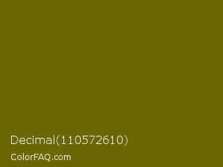 Decimal 110572610 Color is a very dark yellow color and the nearest color is Bronze Yellow #737000. Hex code #6a6802 and RGB value is rgb(106,104,2). In RGB color space, this color is composed of 42% red, 41% green, 1% blue, In CMYK color space, this color is composed of 0% cyan, 2% magenta, 98% yellow , 58% black , In HSL color space, this color has a hue angle of 59° , 96% saturation and 21% lightness.