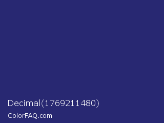 Decimal 1769211480 Color is a dark blue color and the nearest color is St Patricks Blue #23297a. Hex code #282872 and RGB value is rgb(40,40,114). In RGB color space, this color is composed of 16% red, 16% green, 45% blue, In CMYK color space, this color is composed of 65% cyan, 65% magenta, 0% yellow , 55% black , In HSL color space, this color has a hue angle of 240° , 48% saturation and 30% lightness.