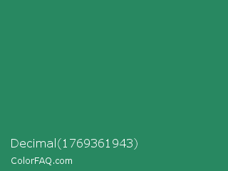 Decimal 1769361943 Color is a normal green color and the nearest color is Eucalyptus #278a5b. Hex code #288861 and RGB value is rgb(40,136,97). In RGB color space, this color is composed of 16% red, 53% green, 38% blue, In CMYK color space, this color is composed of 71% cyan, 0% magenta, 29% yellow , 47% black , In HSL color space, this color has a hue angle of 156° , 55% saturation and 35% lightness.