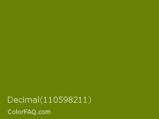 Decimal 110598211 Color is a dark lime color and the nearest color is Bronze Yellow #737000. Hex code #6a8103 and RGB value is rgb(106,129,3). In RGB color space, this color is composed of 42% red, 51% green, 1% blue, In CMYK color space, this color is composed of 18% cyan, 0% magenta, 98% yellow , 49% black , In HSL color space, this color has a hue angle of 71° , 95% saturation and 26% lightness.