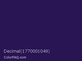 Decimal 1770001049 Color is a very dark indigo color and the nearest color is Valhalla #2b194f. Hex code #291553 and RGB value is rgb(41,21,83). In RGB color space, this color is composed of 16% red, 8% green, 33% blue, In CMYK color space, this color is composed of 51% cyan, 75% magenta, 0% yellow , 67% black , In HSL color space, this color has a hue angle of 259° , 60% saturation and 20% lightness.