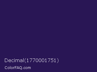 Decimal 1770001751 Color is a very dark indigo color and the nearest color is Valhalla #2b194f. Hex code #291655 and RGB value is rgb(41,22,85). In RGB color space, this color is composed of 16% red, 9% green, 33% blue, In CMYK color space, this color is composed of 52% cyan, 74% magenta, 0% yellow , 67% black , In HSL color space, this color has a hue angle of 258° , 59% saturation and 21% lightness.