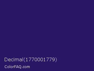 Decimal 1770001779 Color is a dark indigo color and the nearest color is Violent Violet #290c5e. Hex code #291665 and RGB value is rgb(41,22,101). In RGB color space, this color is composed of 16% red, 9% green, 40% blue, In CMYK color space, this color is composed of 59% cyan, 78% magenta, 0% yellow , 60% black , In HSL color space, this color has a hue angle of 254° , 64% saturation and 24% lightness.