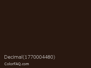 Decimal 1770004480 Color is a very dark orange color and the nearest color is Coffee Bean #2a140e. Hex code #291810 and RGB value is rgb(41,24,16). In RGB color space, this color is composed of 16% red, 9% green, 6% blue, In CMYK color space, this color is composed of 0% cyan, 41% magenta, 61% yellow , 84% black , In HSL color space, this color has a hue angle of 19° , 44% saturation and 11% lightness.