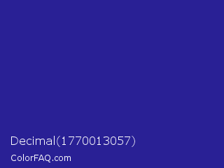 Decimal 1770013057 Color is a normal indigo color and the nearest color is Jacksons Purple #20208d. Hex code #292095 and RGB value is rgb(41,32,149). In RGB color space, this color is composed of 16% red, 13% green, 58% blue, In CMYK color space, this color is composed of 72% cyan, 79% magenta, 0% yellow , 42% black , In HSL color space, this color has a hue angle of 245° , 65% saturation and 35% lightness.