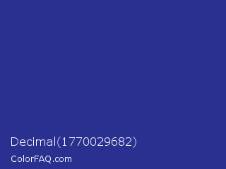 Decimal 1770029682 Color is a normal blue color and the nearest color is Cosmic Cobalt #2e2d88. Hex code #293090 and RGB value is rgb(41,48,144). In RGB color space, this color is composed of 16% red, 19% green, 56% blue, In CMYK color space, this color is composed of 72% cyan, 67% magenta, 0% yellow , 44% black , In HSL color space, this color has a hue angle of 236° , 56% saturation and 36% lightness.
