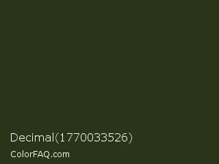Decimal 1770033526 Color is a very dark green color and the nearest color is Mallard #233418. Hex code #293418 and RGB value is rgb(41,52,24). In RGB color space, this color is composed of 16% red, 20% green, 9% blue, In CMYK color space, this color is composed of 21% cyan, 0% magenta, 54% yellow , 80% black , In HSL color space, this color has a hue angle of 84° , 37% saturation and 15% lightness.