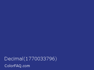 Decimal 1770033796 Color is a normal blue color and the nearest color is Bay Of Many #273a81. Hex code #293484 and RGB value is rgb(41,52,132). In RGB color space, this color is composed of 16% red, 20% green, 52% blue, In CMYK color space, this color is composed of 69% cyan, 61% magenta, 0% yellow , 48% black , In HSL color space, this color has a hue angle of 233° , 53% saturation and 34% lightness.